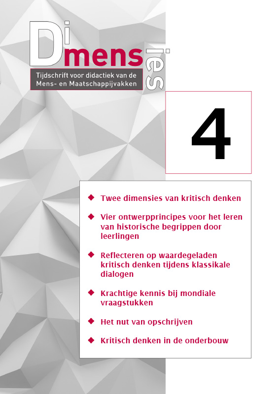 Met enige trots presenteren wij hierbij nummer 5 van Dimensies. Na het themanummer over Kritisch denken is dit een regulier nummer met vier artikelen. In deze artikelen wordt verslag gedaan van diverse soorten vakdidactische onderzoeken: redeneren over maatschappelijke problemen, omgaan met complexe politieke actualiteiten, vragen stellen bij de doorstroom tussen primair en secundair onderwijs of over de wijze waarop vakoverstijgende begrippen mogelijkheden bieden voor samenwerking tussen onze vakken.