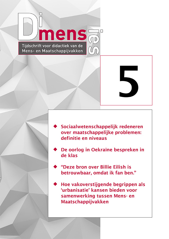 (4) In het artikel Hoe vakoverstijgende begrippen als ‘urbanisatie’ kansen bieden voor samenwerking tussen Mens- en Maatschappijvakken doen Tim van de Heiden en Hanneke Tuithof verslag van hun onderzoek naar de overeenkomsten tussen de doelen en vakdidactische kennis van bovenbouwdocenten van vier mens- en maatschappijvakken in Nederland: geschiedenis, aardrijkskunde, economie en maatschappijwetenschappen.